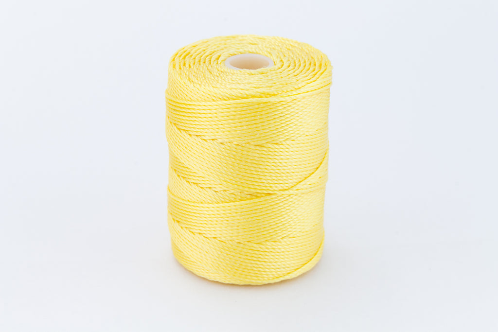 Lemon bonded nylon beading cord for a variety of projects including bead crochet, kumihimo braiding and micro-macrame.