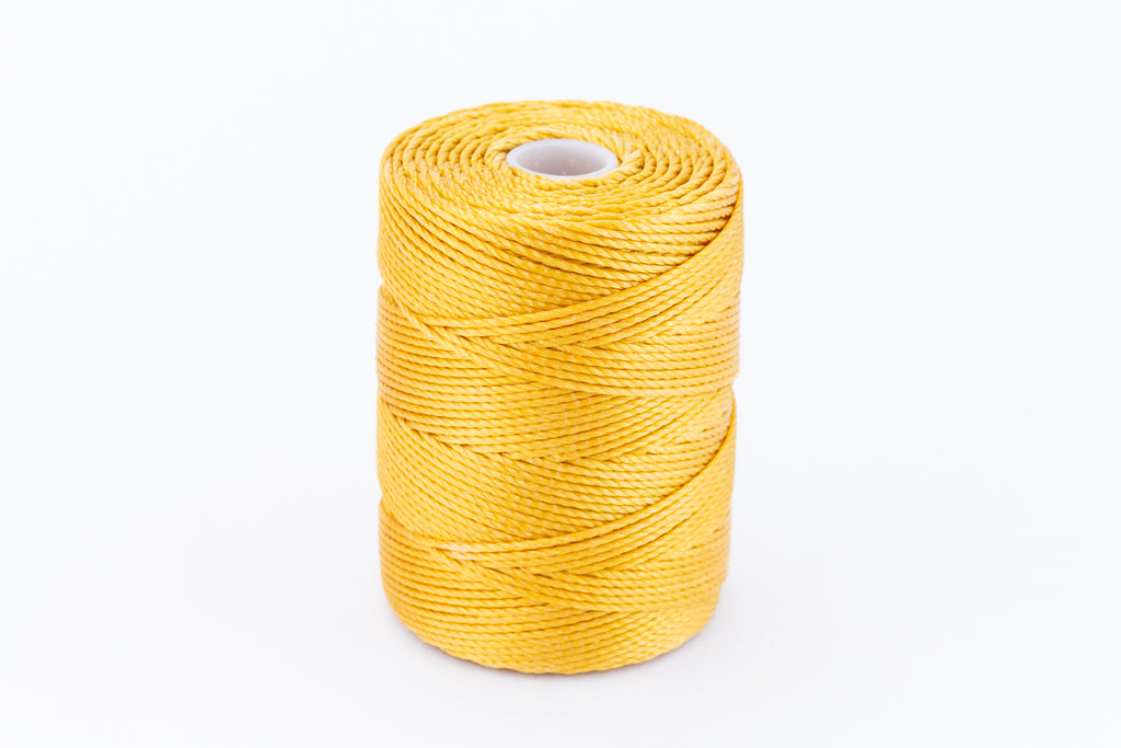 Marigold bonded nylon beading cord for a variety of projects including bead crochet, kumihimo braiding and micro-macrame.