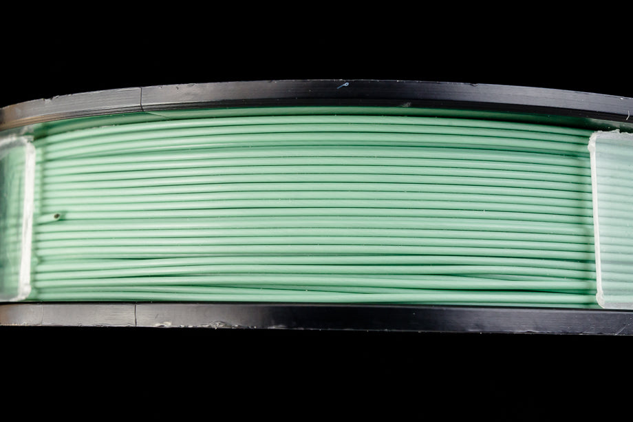 Clear nylon over 49 strands of stainless steel wire with fluorite color coating.