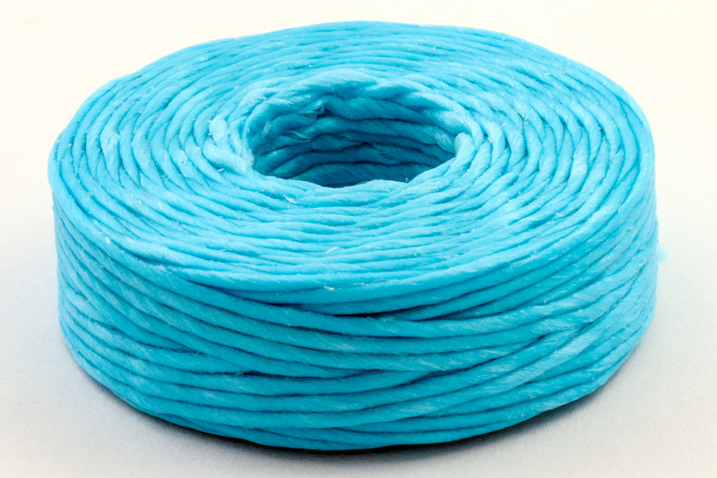 Bright turquoise artificial sinew made from waxed nylon.