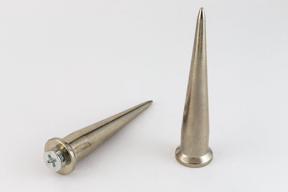 55mm (2 1/8 inch) long brass spike with nickel free silver tone plating.