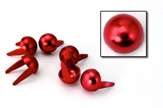6mm domed brass stud with metallic red coating and 2 prongs.