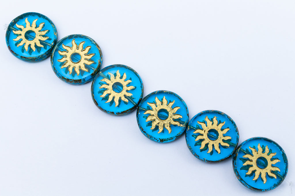 22mm Pacific Blue/Gold/Picasso Sun Coin Bead #SUN004