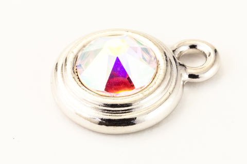 34ss Swarovski Crystal AB/Rhodium TierraCast Stepped Bezel Charm (10 Pcs) #CK794