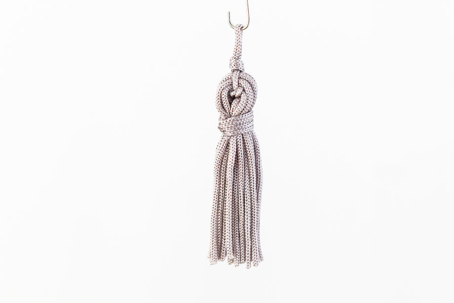 1.5 inch (38mm) long tassel made of grey nylon cord.