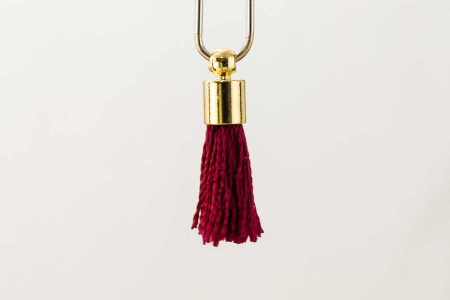 17mm to 20mm long tassel made of silk embroidery floss with nickel-free plated brass cap.