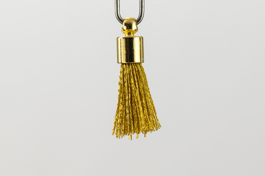 17mm to 20mm long tassel made of silk embroidery floss with nickel-free plated brass cap.