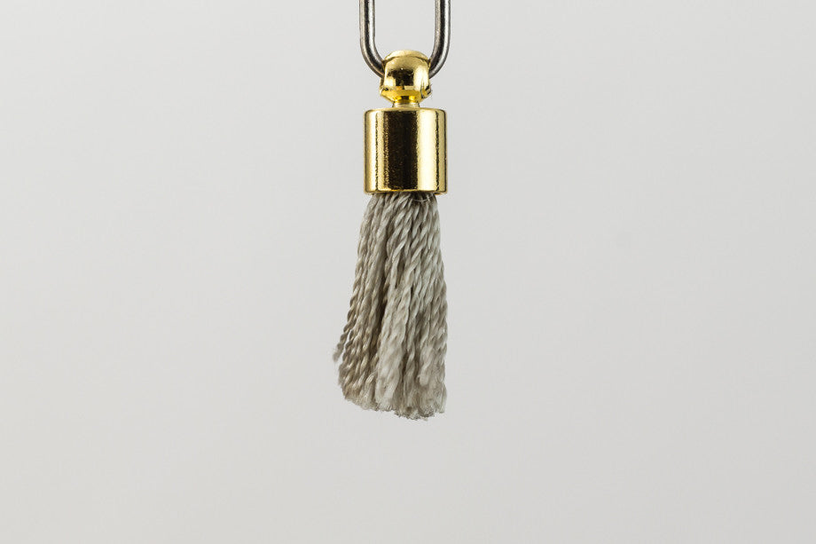 17mm to 20mm long tassel made of silk embroidery floss with nickel-free plated brass cap.