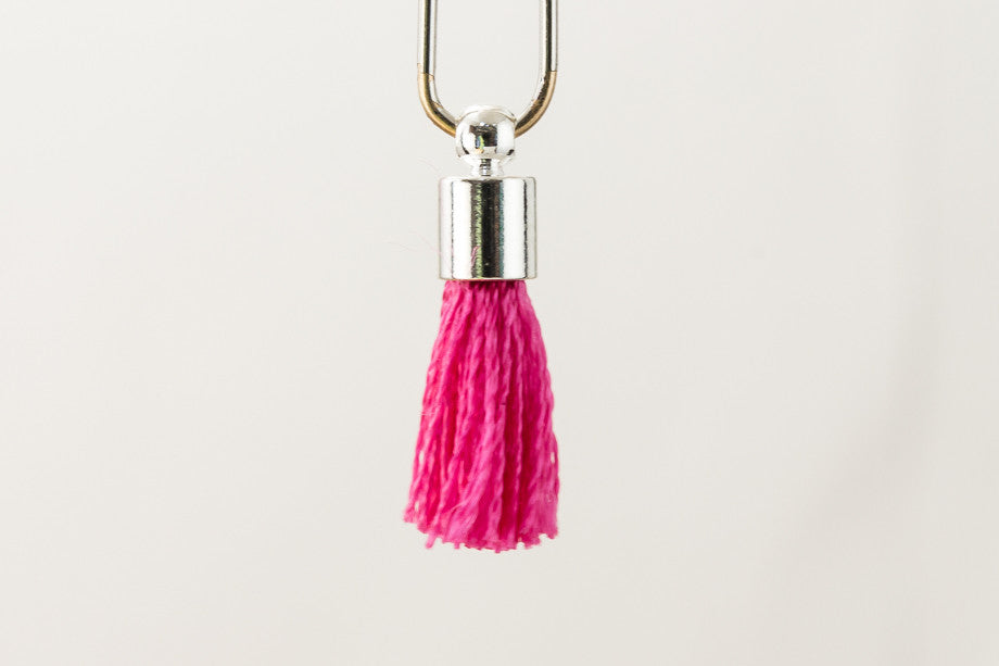 17mm to 20mm long tassel made of silk embroidery floss with nickel-free plated brass cap.