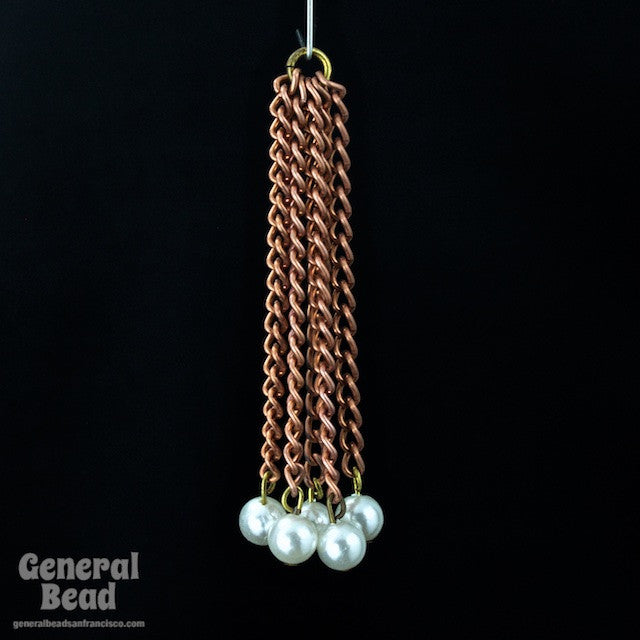 Vintage 2 1/2 inch (64mm) long tassel made of five copper chain with pearls.