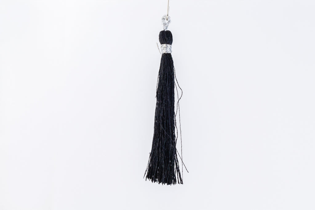 2" tassel made from black silk thread.Current manufacture from India.2 or 20 pieces per package.