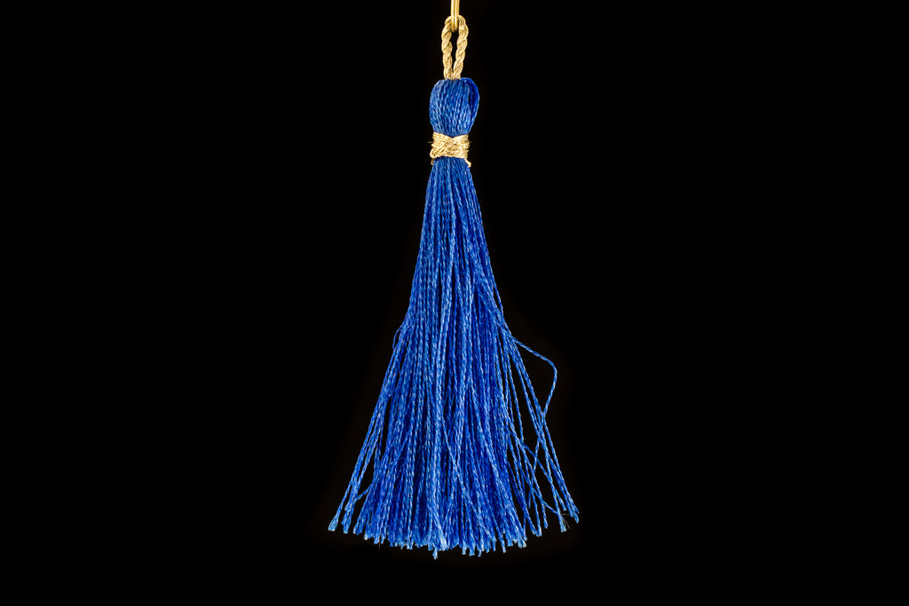 2" tassel made from blue silk thread.Current manufacture from India.2 or 20 pieces per package.