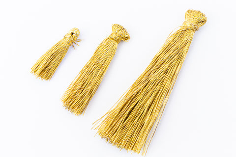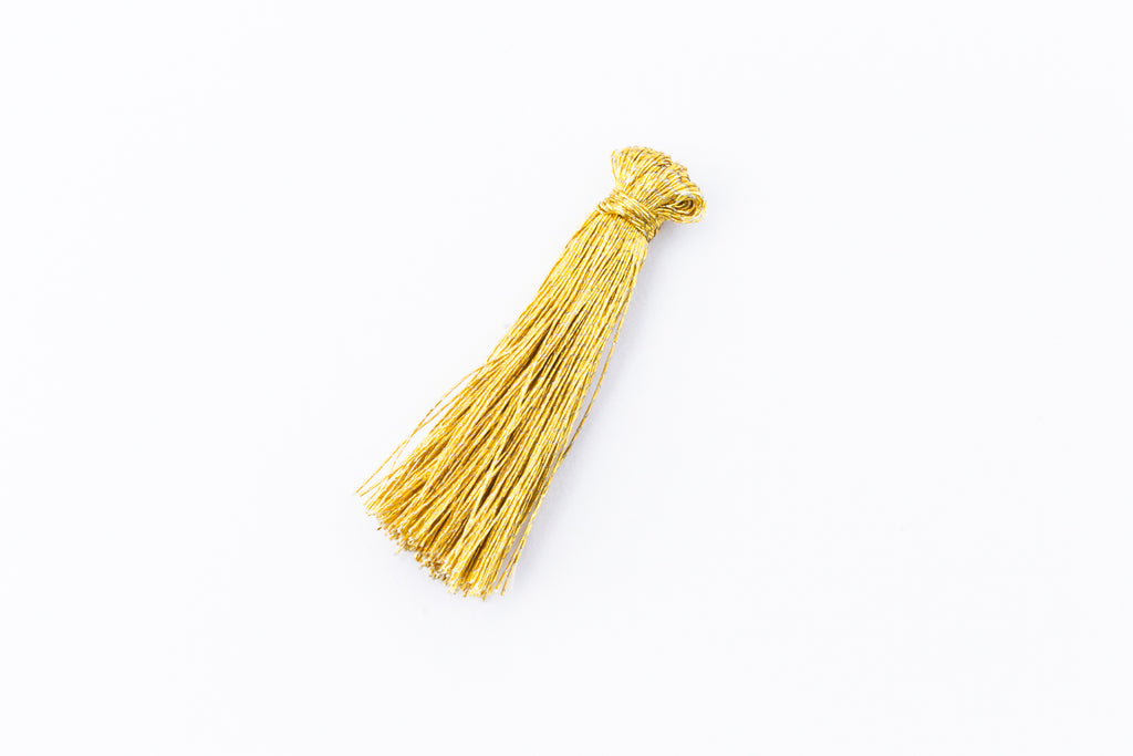 1" to 1.25" long tassel made of metallic gold silk thread.