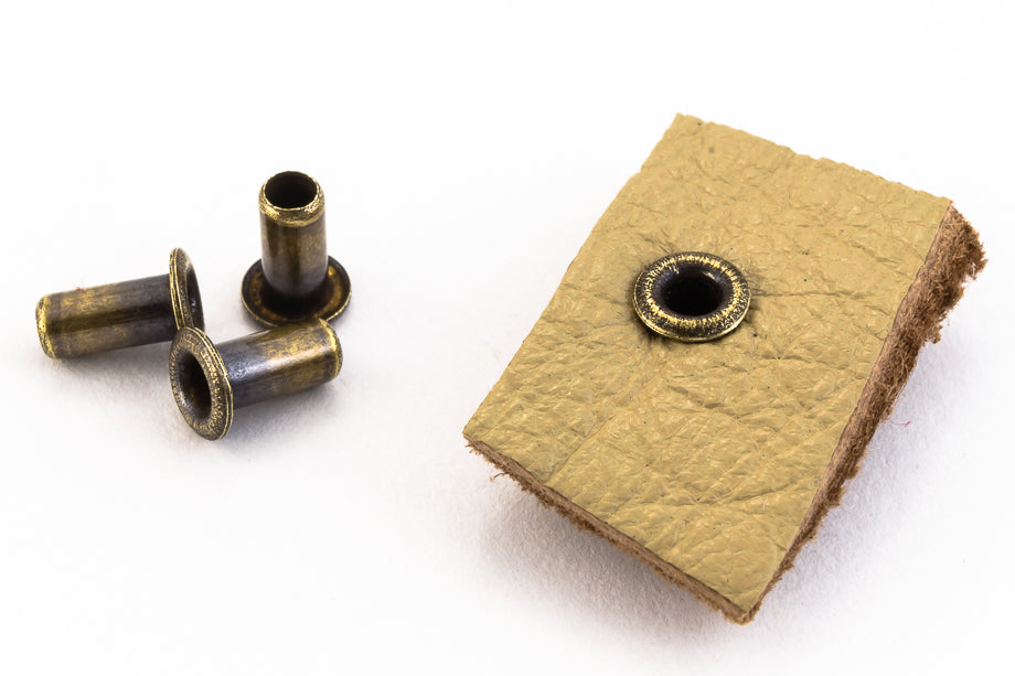 5mm x 2mm brass eyelet with antique brass plating.