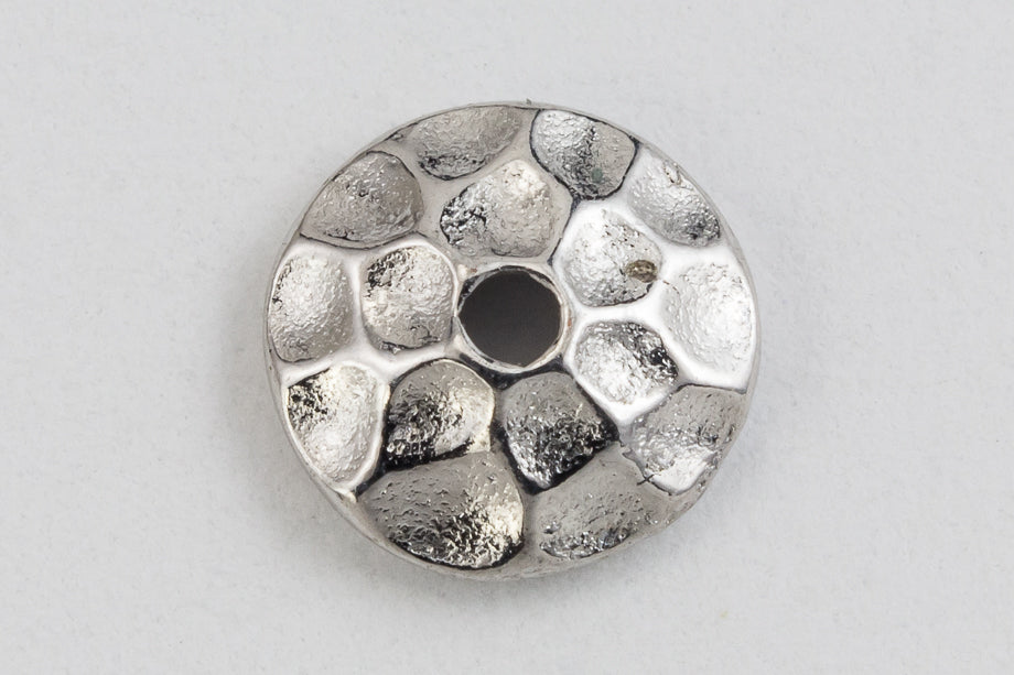 6.25mm bright rhodium shallow bead cap with hammered texture.