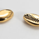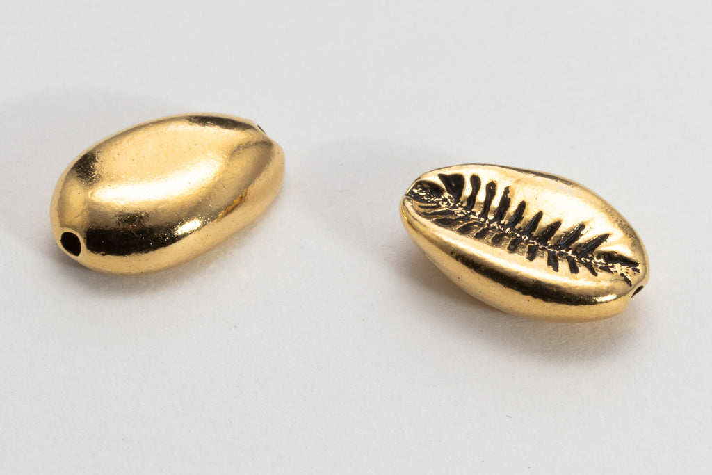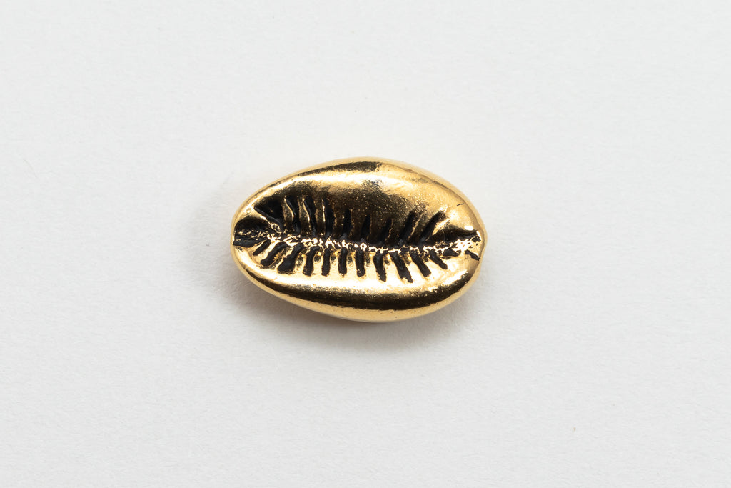14.6mm wide by 9.8mm high bead shaped like a Cowrie shell.