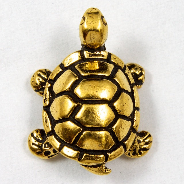 15mm x 11mm antique gold turtle bead with 1.25mm hole.