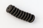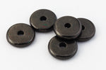 Flat pewter heishi disc with black plating. Outer diameter measures 7mm, inner diameter measures 1.5mm.