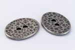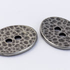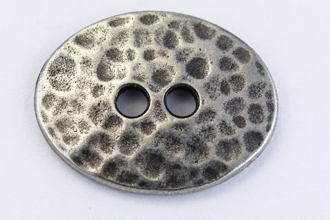 19mm x 15mm antique pewter oval pewter button with distressed texture and two 2.5mm holes.