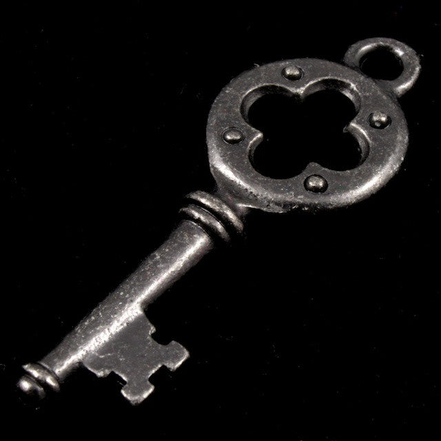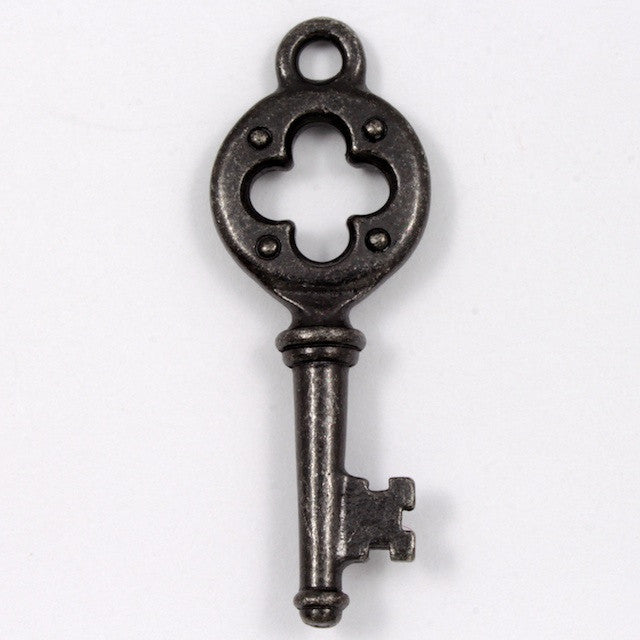 12mm x 32mm black quatrefoil key charm with 2mm loop.