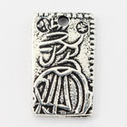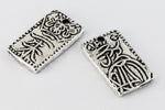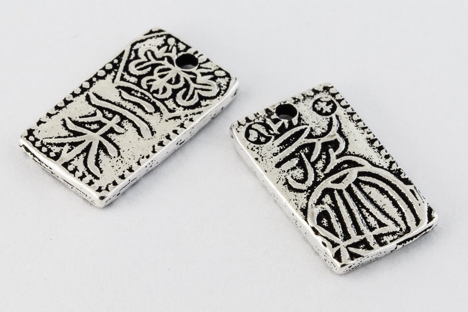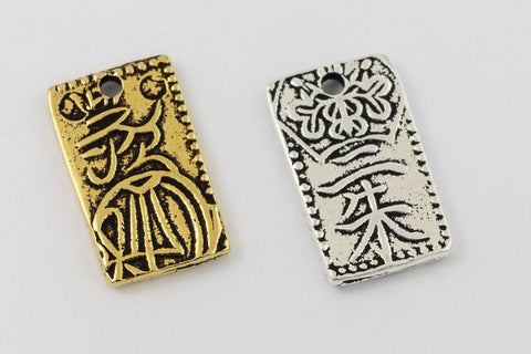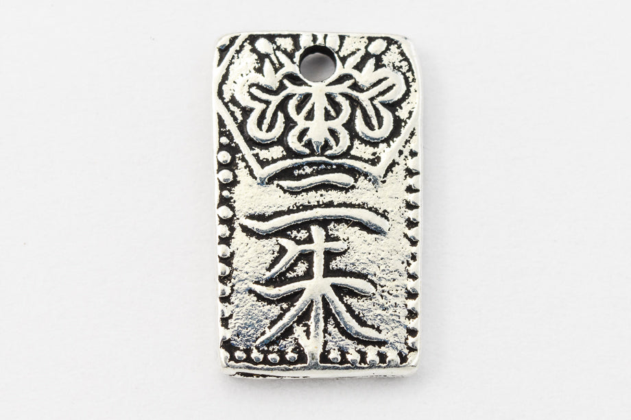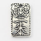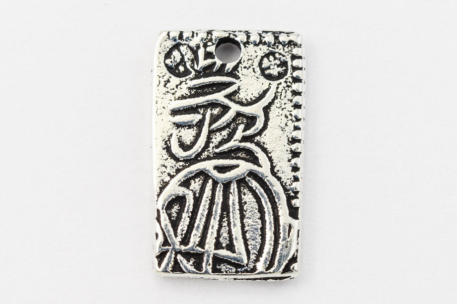 Rectangular with Japanese character and floral design. Detail on both sides. Inner diameter of hole is 1mm.