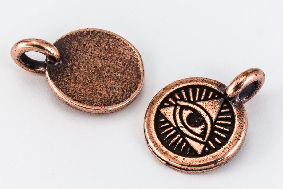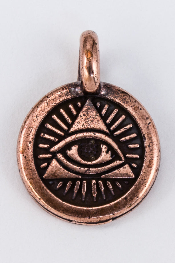 16.6mm x 12.1mm antique copper Eye of Providence charm with loop at top.