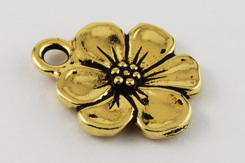 14mm x 17mm antique gold detailed apple blossom with 2mm loop at top.