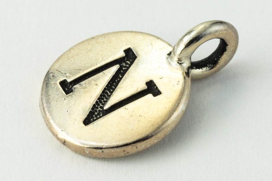16.6mm x 11.6mm antique silver charm with inscribed capital Roman letter "N". 2.6mm loop at top.