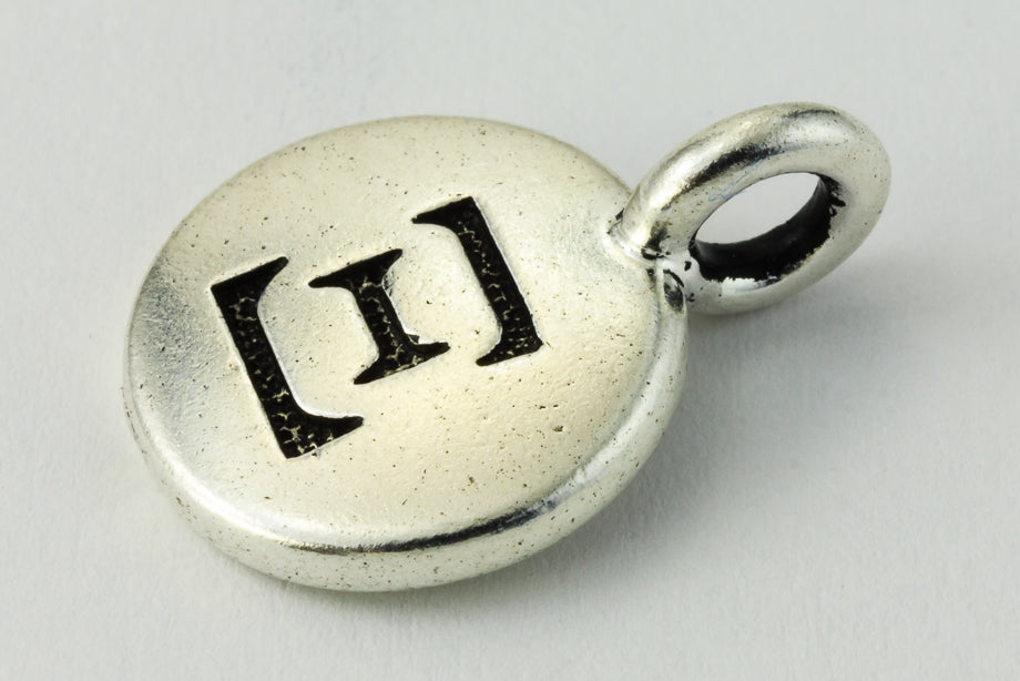 16.6mm x 11.6mm antique silver charm with inscribed capital Greek letter "Xi". 2.6mm loop at top.