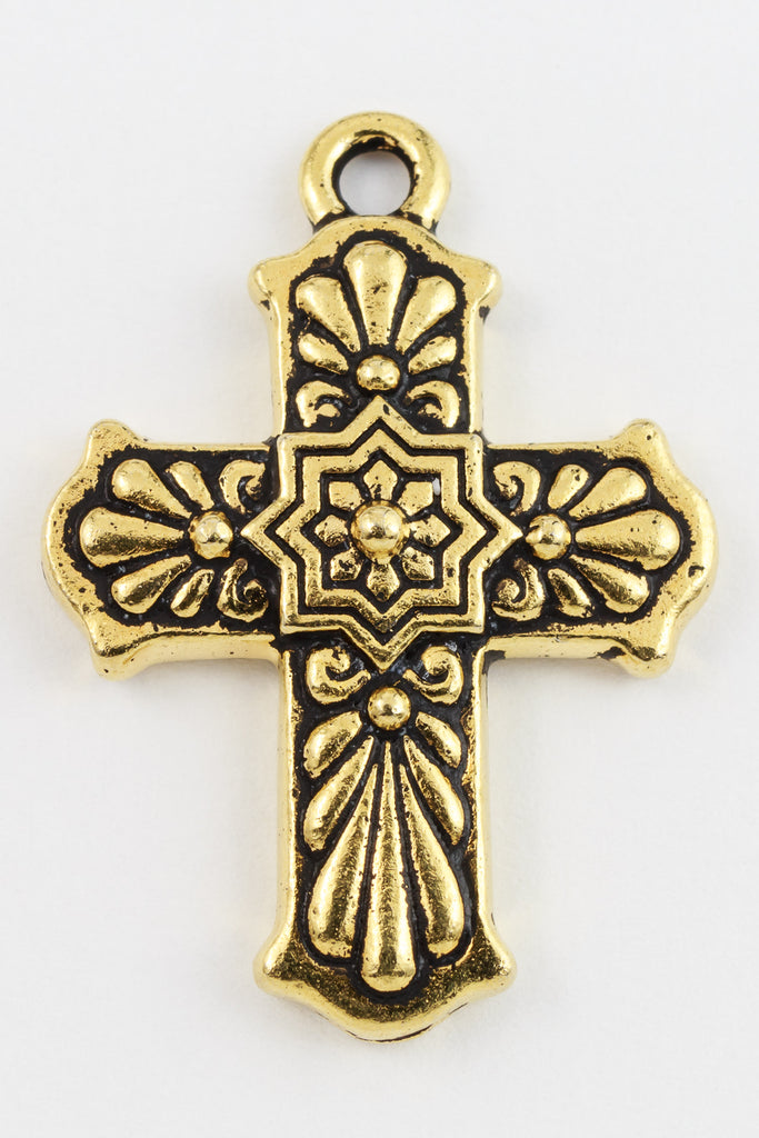 21.25mm x 29.25mm "Talavera" style elaborate cross with 2mm loop at top. Detailed on both sides.