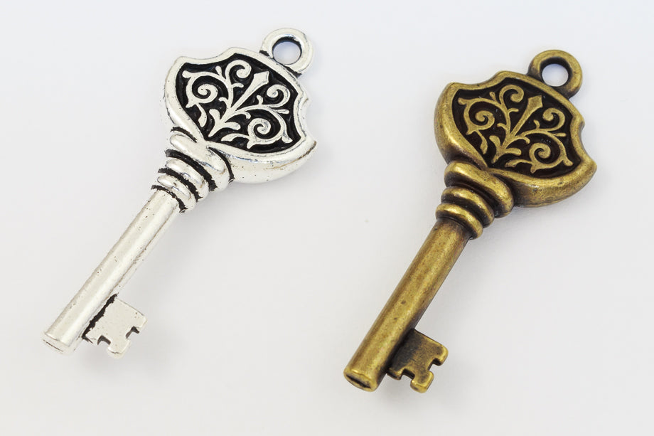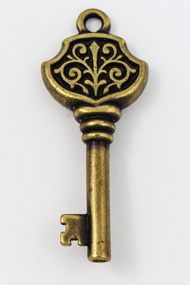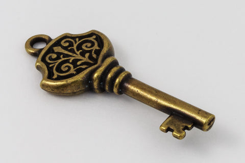 14.75mm x 36.25mm antique brass embellished Victorian style skeleton key with 2mm loop at top.