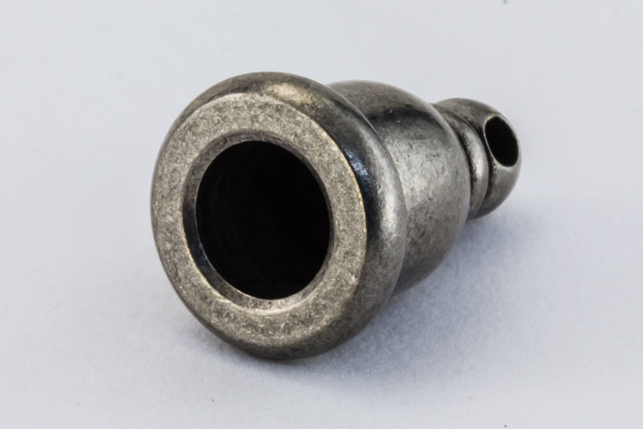 12mm x 8mm, inner diameter of loop 1.5mm. Fits 4mm cord.