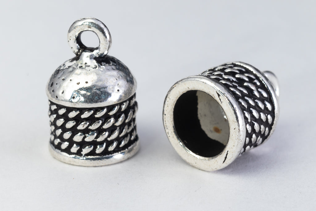 16.3mm high, 7.76mm wide glue-in cord end with wrapped rope texture.