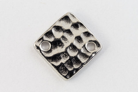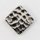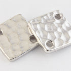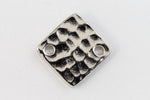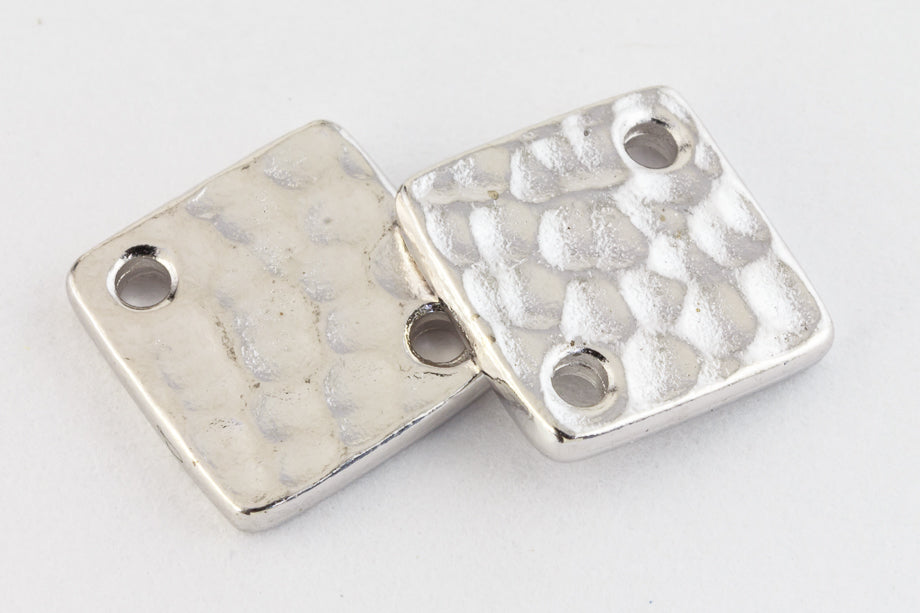 12.1mm rhodium flat square with hammered texture and hole on opposite corners.