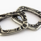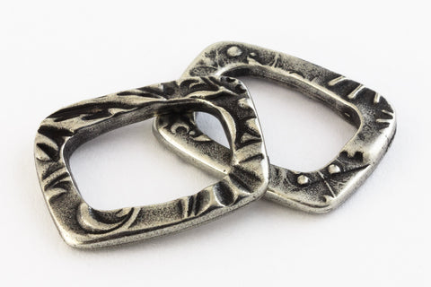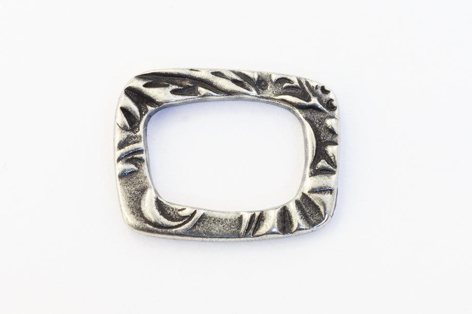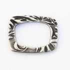 15mm x 19.4mm antique pewter "Jardin" floral embossed irregular rectangle with 9.5mm x 12.9mm center opening.