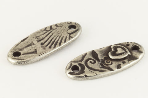 9.3mm x 22.4mm antique pewter embossed "Amor" bar link with 1.7mm hole on each end.