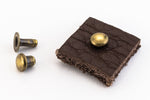 Slightly domed brass rivet with antique brass plating.