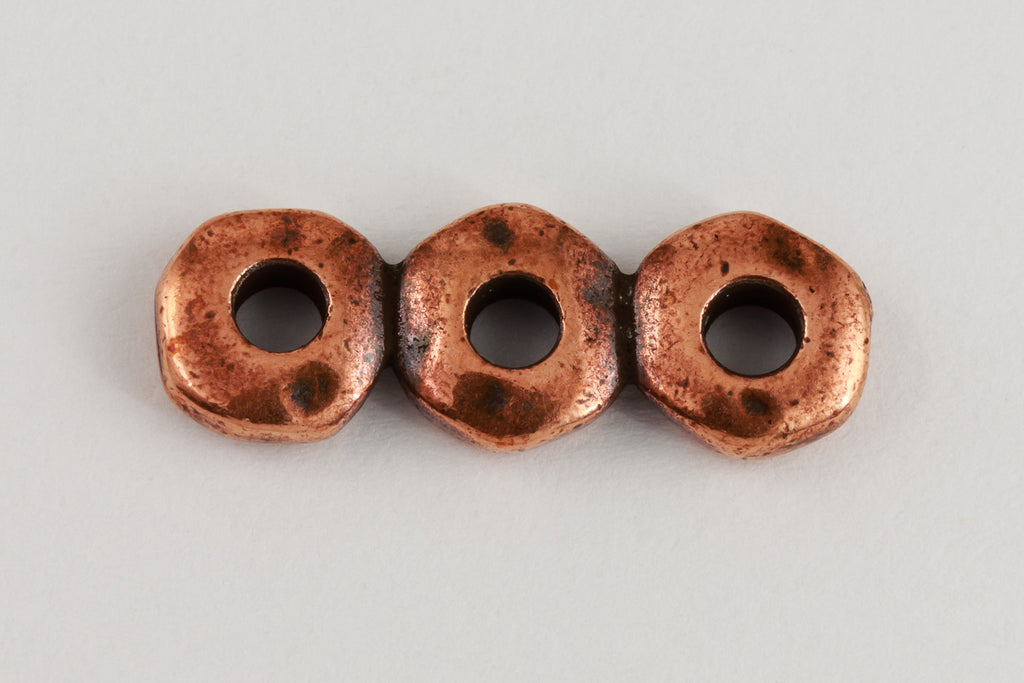 4.7mm x 13.8mm antique copper three hole "nugget" spacer bar.