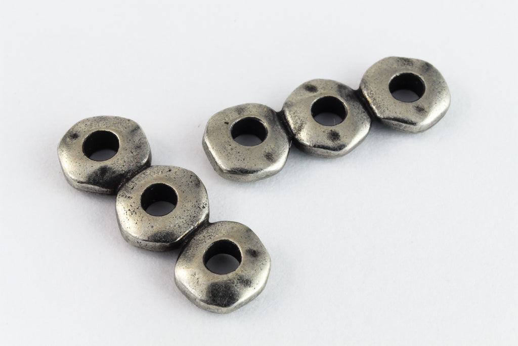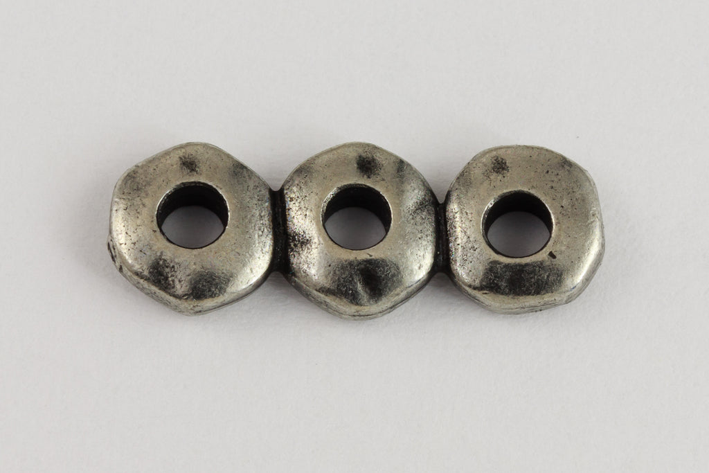 4.7mm x 13.8mm antique pewter three hole "nugget" spacer bar.