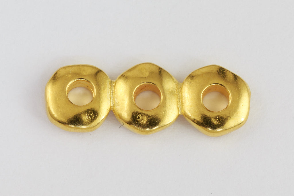 4.7mm x 13.8mm bright gold three hole "nugget" spacer bar.