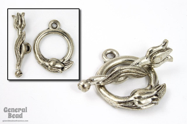 Pewter toggle set. 13mm antique silver tulip ring and 22mm bar.