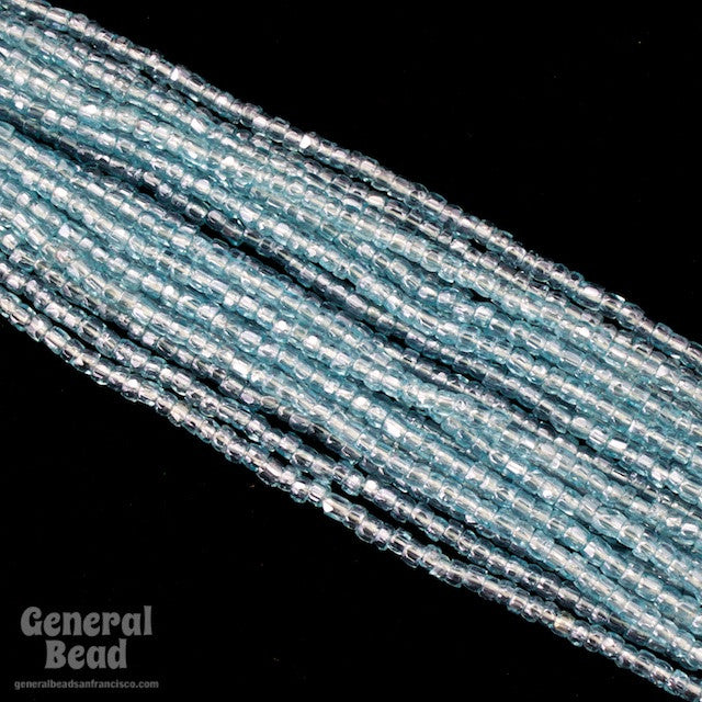 Size 12/0 (1.7mm) 3-cut glass seed bead in luster transparent aqua.