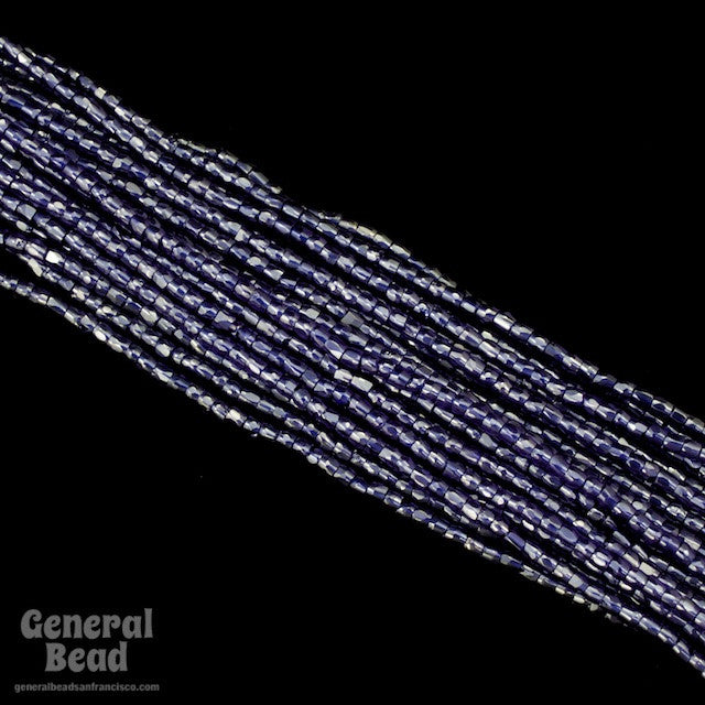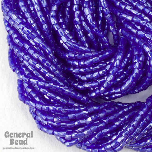 Size 12/0 (1.7mm) 3-cut glass seed bead in luster transparent cobalt.