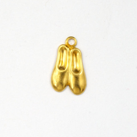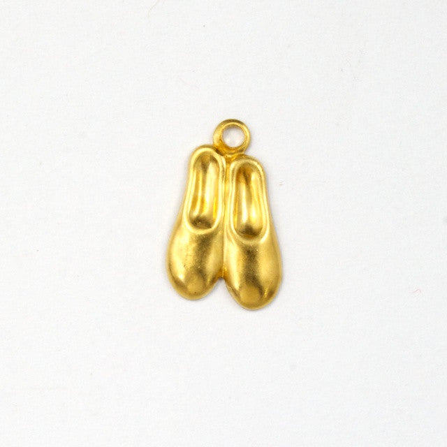 8mm x 10mm raw brass pair of ballet slippers with loop at top.