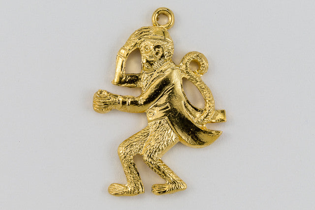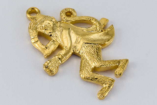 10mm x 20mm gold plated brass dancing monkey wearing a tailcoat and tipping his hat.