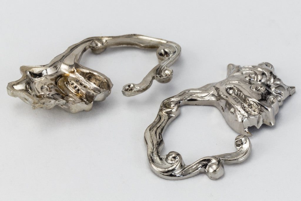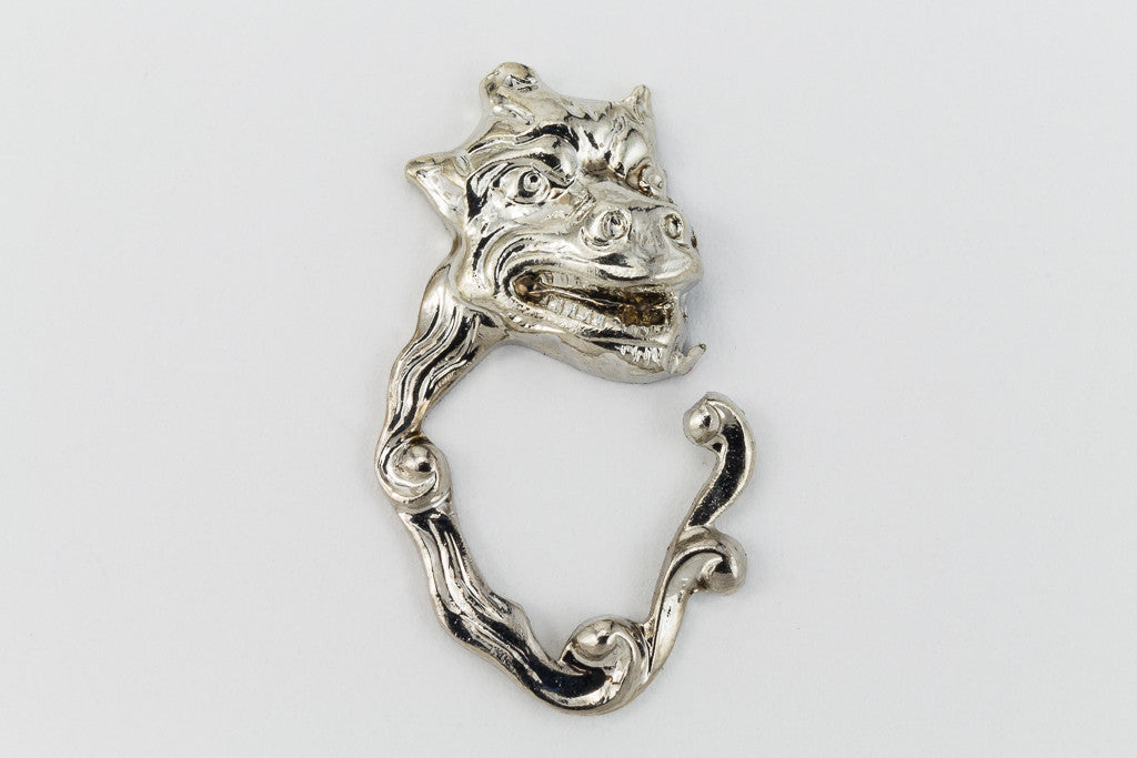 20mm silver tone monster face trailing wisps of smoke with hole at top.