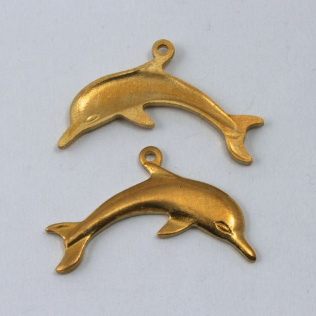 15mm x 23mm raw brass dolphin with loop at top in pair of left and right.