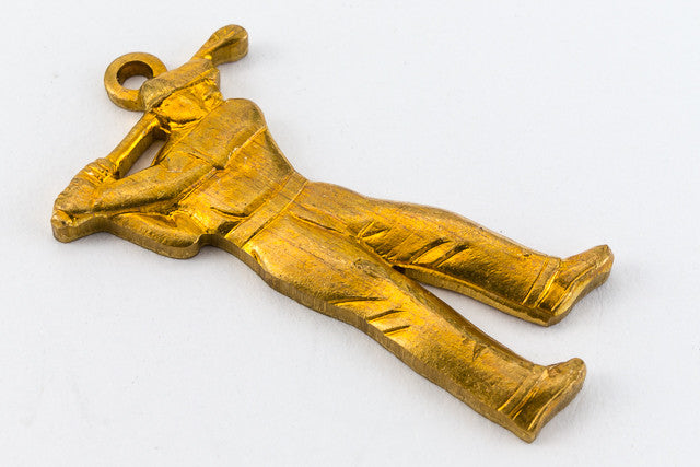 25mm raw brass man playing golf with loop at top.