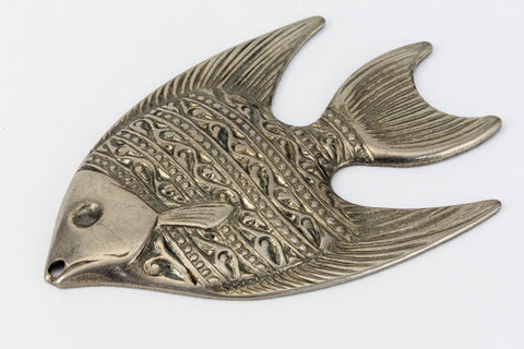 40mm antique silver left-facing angelfish charm with embossed pattern details and hole through mouth.
