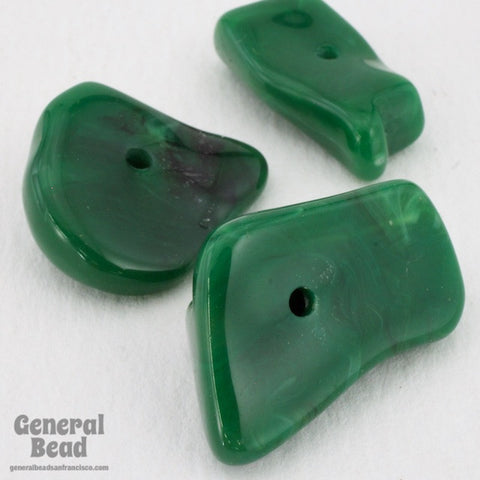 10mm- 20mm marbled green smooth irregular shapes with 1mm hole.